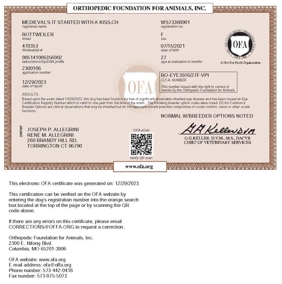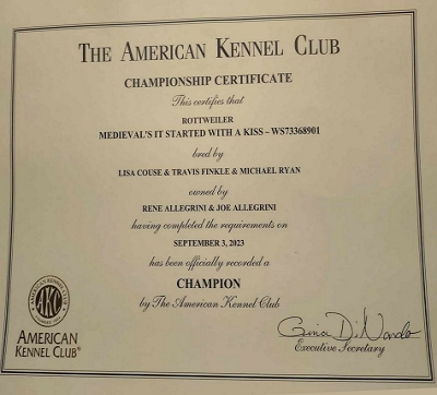 Dam: Ch Medieval's Kissed By Fire