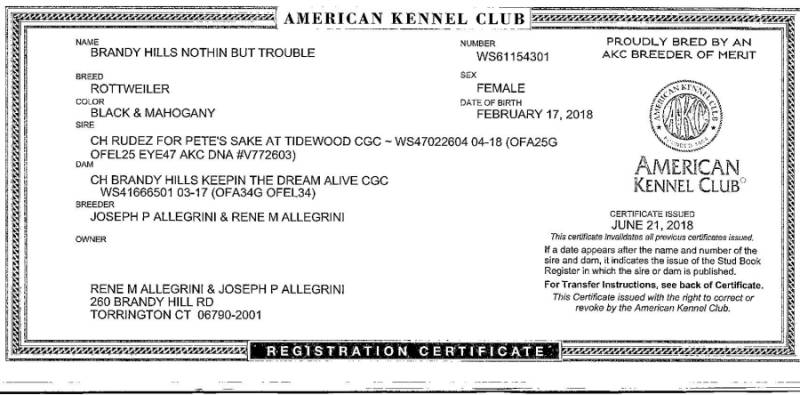 Dam: Ch Brandy Hills Keepin the Dream Alive